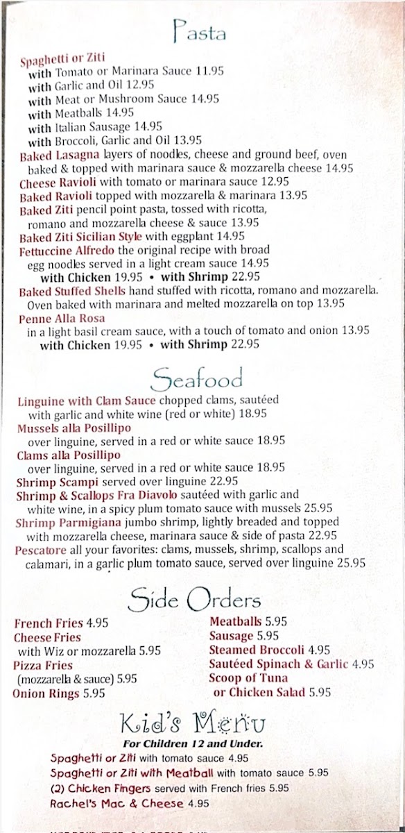 Clams, Mussels, Shrimp, Scallops & Calamari un a garlic plum tomato sauce over linguine